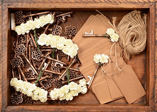 - The Wedding Favors For Guests Bulk Set Contains: 50 x Vintage Key Bottle Opener keys for Wedding Favors, 50 x Escort Tags Card, 50 x White Paper Rose Flowers and 50 x of Ropes
