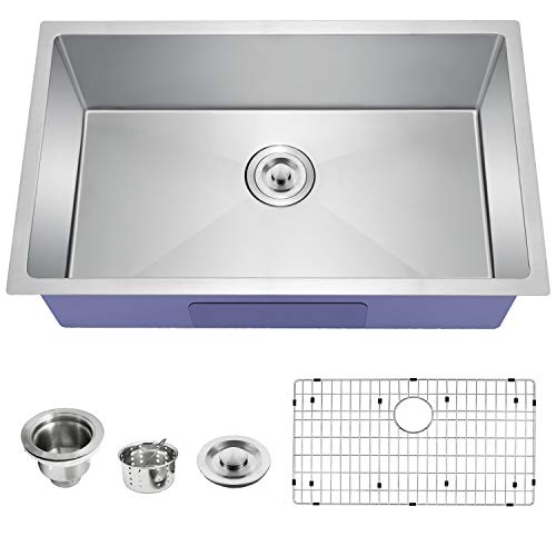Review TopCraft Kitchen Sink Undermount Kitchen Sink Stainless Steel Sink Single Bowl Kitchen Sinks Bar Sink with Strainer & Bottom Grid,32 Inch
